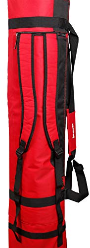 Brubaker Combi Set CarverPro XP - Borsa da Sci con Spallacci Imbottiti e Borsa Porta Scarponi da Sci per 1 Paio di Sci + Bastoncini + Scarponi + Casco - Nero Rosso - 170 cm