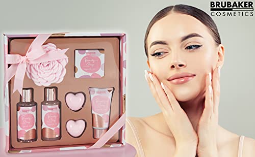 BRUBAKER Cosmetics Set Bagno e Doccia Beauty Sleep Sugared Rose - Profumo Rosa - Set Regalo in 7 Pezzi - Regalo per Ogni Occasione - Oro Rosa