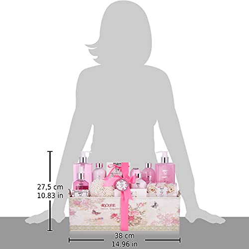 BRUBAKER Cosmetics set beauty da bagno e doccia 'Classic Rose' - con fragranze floreali di rose - set regalo in 17 pezzi presentati in un cestino in stile Vintage