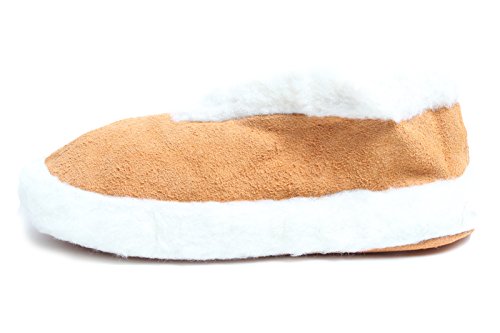 Brubaker Pantofole Calde e comode Uomo/Donna in Vera Pelle con Suola Antiscivolo - Babbucce in Pelle camoscio Velour Imbottite con Lana - Colore Marrone Misure 35-47