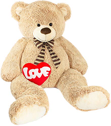 Brubaker Orso di Peluche di Grandi Dimensioni, 150 cm di Altezza, in Color Marrone, con Un Cuore di Peluche con su Scritto 'Love'