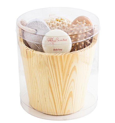 Brubaker Wellness - Set per la cura del corpo in secchio di legno, 5 pezzi
