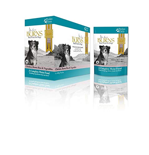 Brucia Cibo Umido Penlan Pollo, Riso Marrone e Verdure per Cani di Tutte Le età 24 Sacchetti da 400 g (4 scatole).