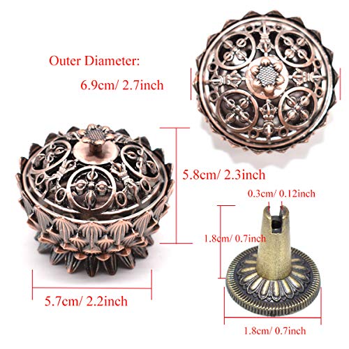 [La confezione include] 2 pezzi bruciatore di incenso di loto, colore rosso rame e bronzo, diametro esterno-6,9 cm, diametro inferiore- 5,7 cm, altezza- 5,8 cm;