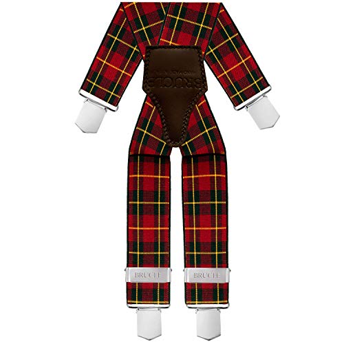 BRUCLE bretelle uomo elastiche con dorsale in cuoio, regolabili, fissaggio a clip, scozzese rossa