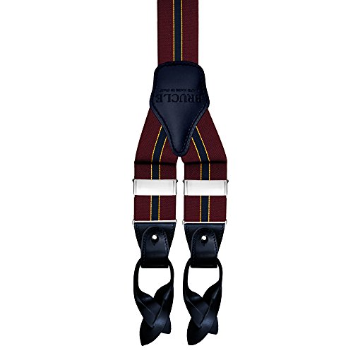 BRUCLE bretelle uomo elastico e pelle doppio uso clip e bottoni, regimental bordeaux