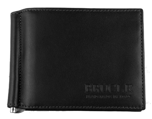 BRUCLE Portafoglio Nero con Molla fermasoldi in Vera Pelle, Interamente Realizzato a Mano in Italia con i Migliori pellami.