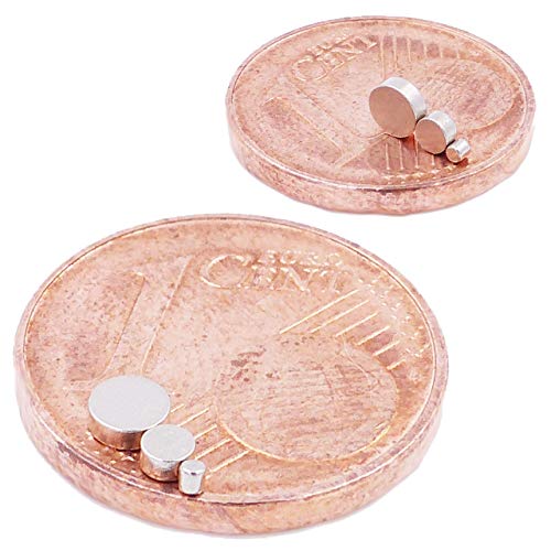 GRANDEZZA DELLA CONSEGNA: Riceverai 3 x 20 = 60 pezzi di magneti al neodimio a forma di disco (dischi magnetici, magneti piatti, piatti e sottili) con una dimensione di 1 x 1 mm + 2 x 1 mm + 3 x 1 mm (diametro 1mm + 2mm + 3mm, altezza 1mm), in una pregiata confezione. Anche come regalo, questi piccoli miracoli di potenza sono l‘ideale.
