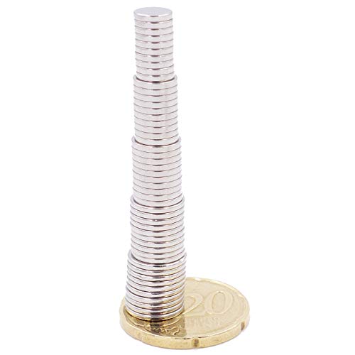 GRANDEZZA DELLA CONSEGNA: Riceverai 5 x 10 = 50 pezzi di magneti al neodimio a forma di disco (dischi magnetici, magneti piatti, piatti e sottili) con una dimensione di 6 x 1 mm + 7 x 1 mm + 8 x 1 mm + 9 x 1 mm + 10 x 1 mm (diametro 6mm + 7mm + 8mm + 9mm + 10mm, altezza 1mm), in una pregiata confezione. Anche come regalo, questi piccoli miracoli di potenza sono l‘ideale.