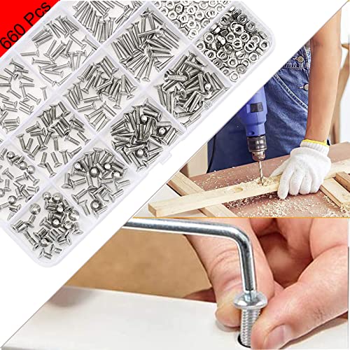 Viti a Brugola, 660 Pezzi Viti Svasate M2 M2,5 M3 Vite a Esagono Incassato, Bullone a Testa Svasata, Viti Piatte in Acciaio Inossidabile Di Fissaggio Set con Chiavi a Brugola pinzetta