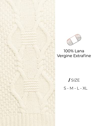 Brunella Gori Maglione Girocollo - Donna, Autunno/Inverno - 100% Lana Vergine Extrafine - 100% Made in Italy - Bianco, XL