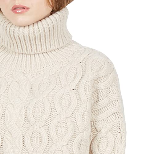 Brunella Gori Maglione Pullover Dolcevita Motivo Aztec Donna - 90% Merino 10% Cashmere - Fatto in Italia Colore Crema XL
