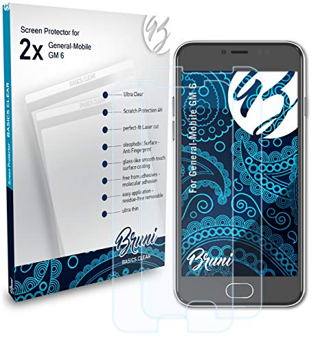 Bruni Pellicola Protettiva Compatibile con General-Mobile GM 6 Pellicola Proteggi, Cristallino Proteggi Schermo (2X)