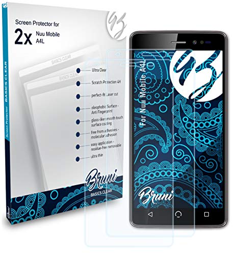 Bruni Pellicola Protettiva Compatibile con Nuu Mobile A4L Pellicola Proteggi, Cristallino Proteggi Schermo (2X)