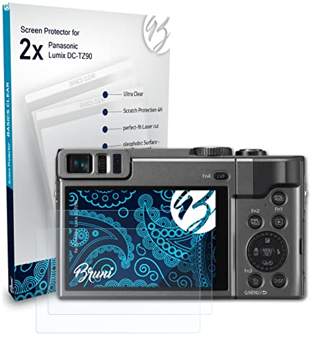 Bruni Pellicola Protettiva compatibile con Panasonic Lumix DC-TZ90 Pellicola Proteggi, cristallino Proteggi Schermo (2X)