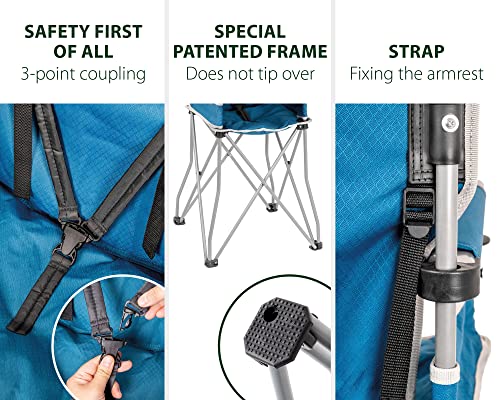 Sicurezza: realizzato con struttura di sicurezza in acciaio, braccioli imbottiti con bloccaggio di sicurezza e imbracatura di sicurezza