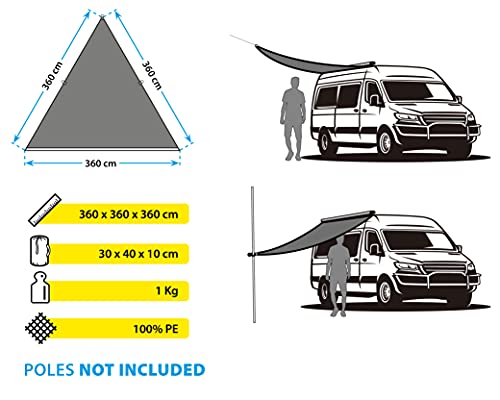 BRUNNER Deflector Triangle Tendalino Protezione dal Sole Parasole per Caravan, Roulotte, Camper, Furgoni, Minibus e Van, Accessori di Fissaggio Inclusi, 360 x 360 x 360 cm