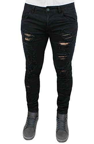 Bruno Leoni Pantaloni Jeans Uomo Strappi Nero Slim Fit Casual Cotone Elastico (52)