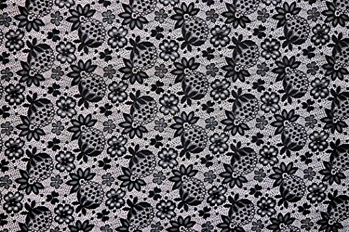 Brunswick Mills - Tessuto in nylon ed elastan con motivo floreale gotico in pizzo, larghezza: 147,32 cm, colore: nero