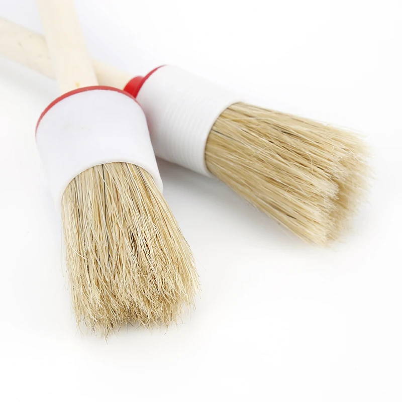 Car Wash Brush Cleaning Round Head Wood Handle Beige Faux Bristle Wheel Brush For Dash Trim Seats Car Cleaning Tools Auto