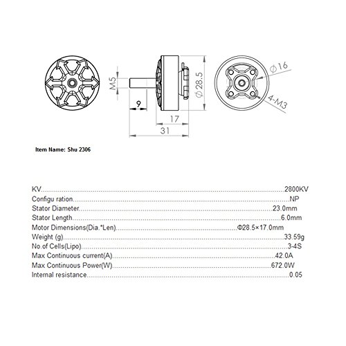 DYS Samguk Series Wei 2306 2800KV motr: 4 CW Screw Thread, need Adjust the direction of flight control.