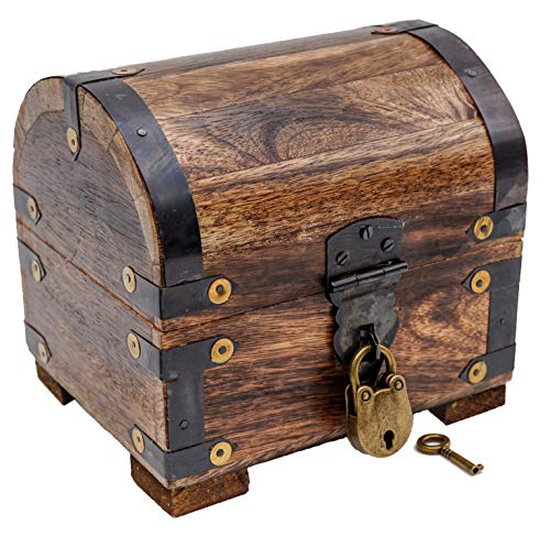 Brynnberg Scrigno del Tesoro con Lucchetto Vintage Bauletto Stile Antico per Accessori Gioielli Oggetti di Valore, Cassaforte in Legno, Idea Regalo Decorativa 14x12x12cm