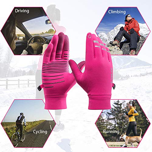 BRZSACR Guanti da Corsa Inverno Caldo Guanti da Ciclismo con Dita Intere Touch Screen Sport Mountain Bici da Strada Bicicletta da Lavoro Equitazione Guanti da Arrampicata Uomo e Donna (Rosa, S)