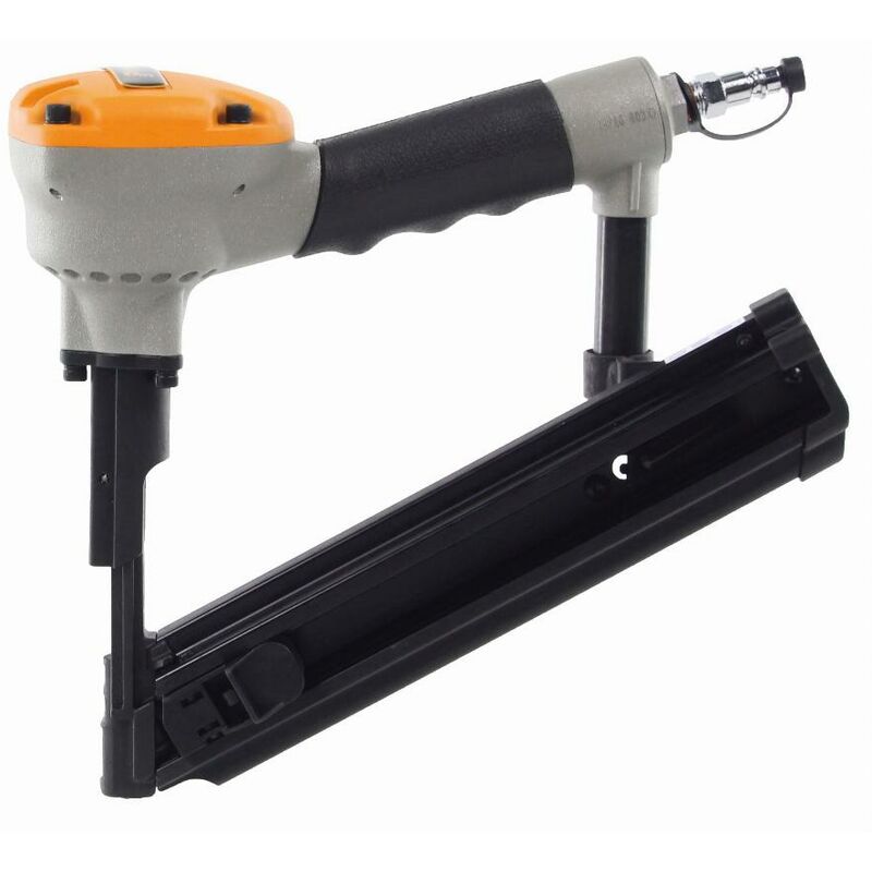 Dettagli: - Chiodatrice pneumatica a 34° per il fissaggio di connettori metallici - Strumento leggero, semplice e di dimensioni ridotte per il fissaggio di connettori metallici - Chiodi speciali per connettori per un fissaggio robusto - Posizionamento del chiodo - il chiodo viene utilizzato per centrare il foro nelle piastre dei connettori - Multi-colpo - il sistema di percussione guida il chiodo lentamente e con precisione - Grilletto 'one touch' - non è necessario l'uso del grilletto - Design compatto - unico in spazi ristretti e tra i travetti APPLICAZIONI - Connettori con fori da 5 mm: connettori angolari - Piastre di connessione - Scarpe da carpentiere - Clip per capriate - Controventature