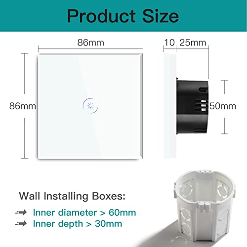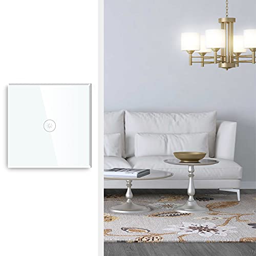 BSEDD - Interruttore dimmer in vetro, 1 pulsante, 1 via, compatibile con LED, interruttore dimmer per luci a LED, 110 V - 250 V, bianco
