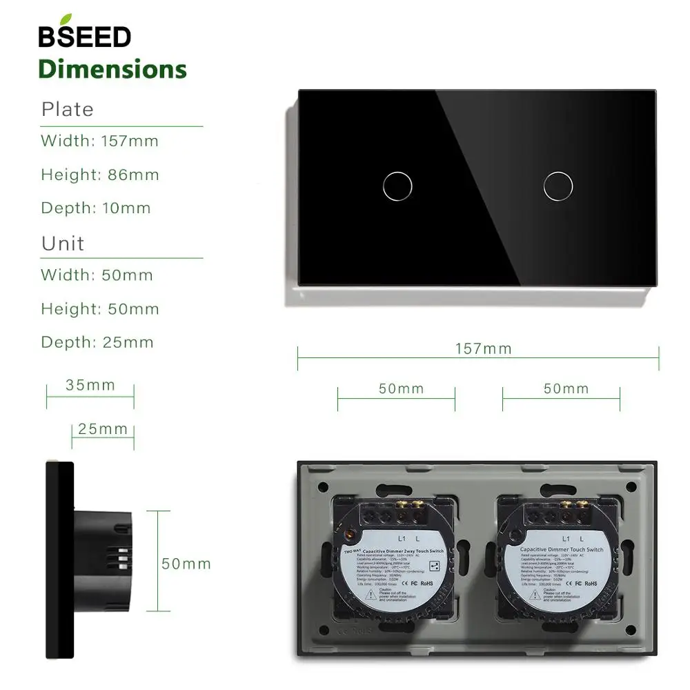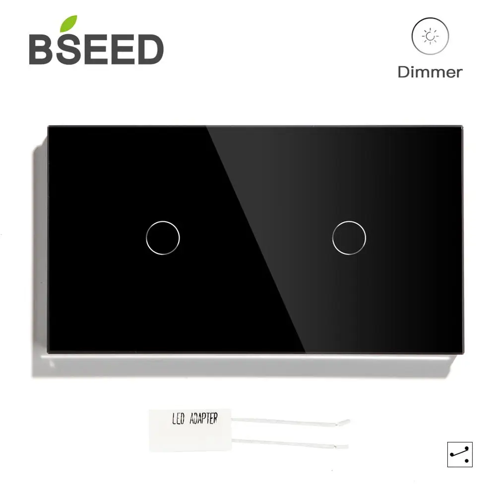 BSEED Double 1Gang 2Way Dimmer Touch Light Switch White Black Golden Crystal Panel Wall Touch Dimmable Led Light EU Standard