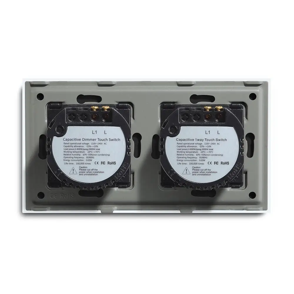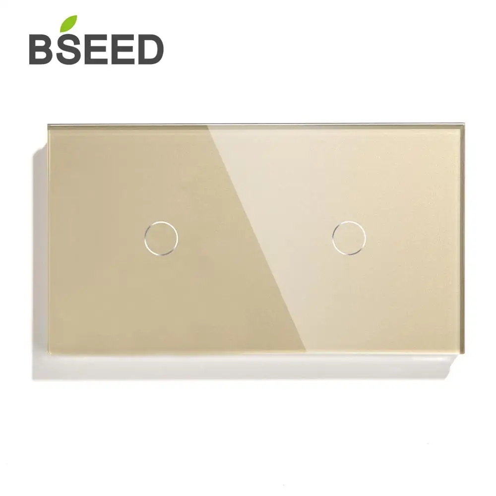 Bseed 2 Gang 1 Way 2 Way Touch Switch 157mm Light Switch White Black Golden Crystal Class Panel Switch