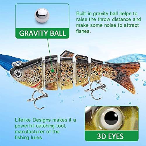 [Esca multi-articolazione a 7 sezioni] Con un design multi-articolazione a 7 sezioni, l'esca da pesca può affondare lentamente e può esibire un'azione di nuoto naturale a forma di S a qualsiasi velocità e fornire un'incredibile capacità di flessione flessibile per fornire un'azione extra a attirare il pesce bersaglio per cercare attivamente la preda.