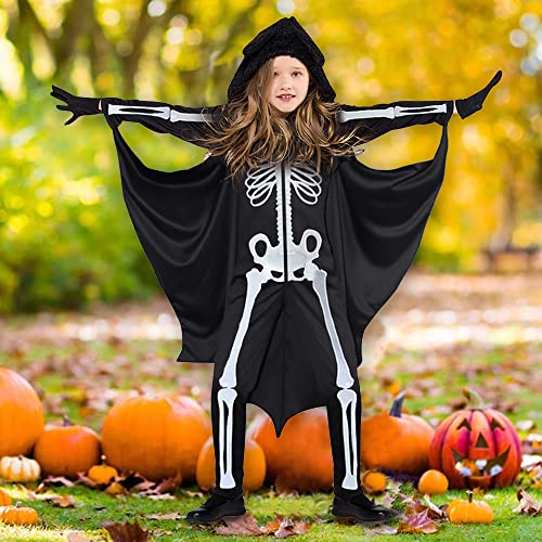 Bseical Halloween Scheletro Pipistrello Vampiro Costume Per Bambino, Costume Ali Bat Con Mantello E Guanti, Carnevale Costumi Halloween Cosplay Mantello Tuta Per 3-13 Ragazze, Ragazzi (6-7 anni)