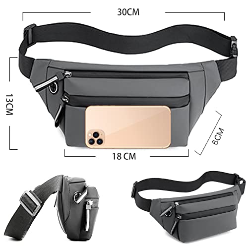 BSITSSS Marsupio Uomo Donna, Marsupio Impermeabile Tessuto Oxford Marsupio Uomo Tracolla con Jack per Cuffie e 4 Zip-Marsupio con la Cintura Regolabile, per Corsa Ciclismo Escursione Campeggio Nero