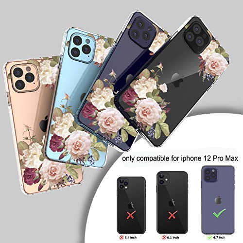 BSLVWG Compatibile con iPhone 12 Pro Max, motivo floreale trasparente, con morbido paraurti in TPU, per Apple iPhone 12 Pro Max 6,7 pollici (rosa bianca)