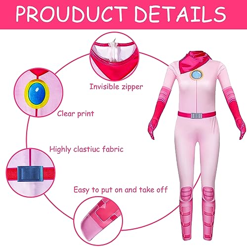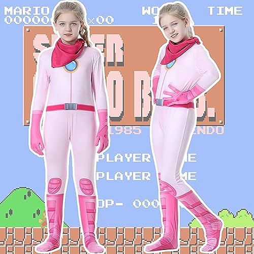 BSNRDX Peach Costume da Peach Bambini,Vestiti Da Per Abito Da Principessa Tuta Da Battaglia Maniche Lunghe Dress Masquerade Abiti Da Carnevale di Halloween Per Bambini Ragazza