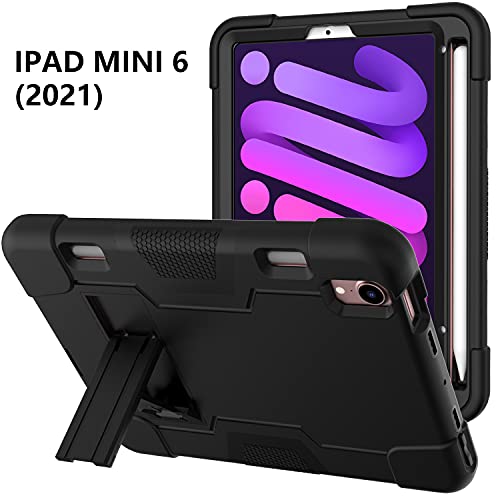 Bspring Custodia compatibile con iPad Mini 6 (8,4 pollici, 2021) Custodia protettiva resistente agli urti e agli urti, con supporto pieghevole,Nero