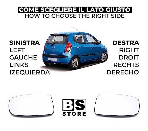 BSSTORE Vetro Specchietto Retrovisore per HYUND@I I10 I 2008-2013 (Destro - Lato Passeggero)
