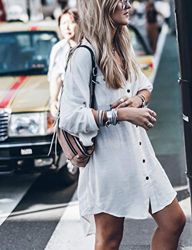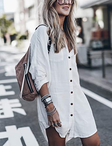 Bsubseach Copricostume Bianco a Maniche Lunghe per Donna Abito a Tunica con Scollo a V Allentato