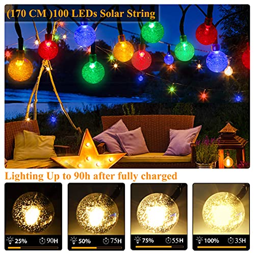 [2021 Nuove Aggiornate Catena Luminosa Esterno Solare] - Stringa lunga 17 metri con 100 lampadine di cristallo a led super luminose, compatibile con batteria di capacità maggiore (1200 mAh), impermeabile IP68, 2 modi ricaricabili - pannello solare & cavo USB, 8 modalità di illuminazione, 4 modalità di luminosità regolabili, modalità temporizzata e telecomando.