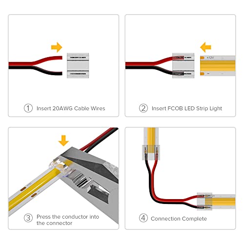 Usi multipli: Estendere la vostra luce di striscia FCOB 10 mm di larghezza, FCOB striscia LED Splicing, connessione ad angolo, e collegare l'alimentazione direttamente