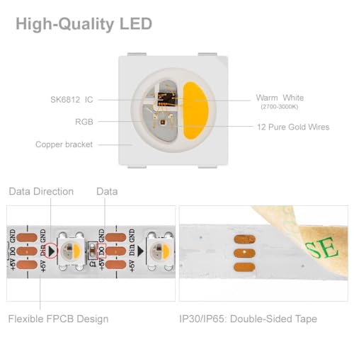 SK6812 Strip LED RGBW è l'ultimo upgrade di WS2812B LED.SK6815 a un cambio colore più ricco e possibilità di combinazione colori.