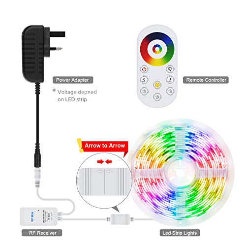 La tensione dipende dalla striscia LED, dalla striscia LED DC12V, si prega di utilizzare l'alimentatore DC12V, non utilizzare DC24V per questo controller quando si accende la striscia LED DC12V. 5 V< 30W 12V <72W 24V<144W Corrente di uscita: max 6 A.