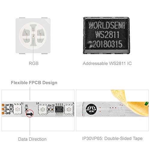 【Striscia LED RGB WS2811 indirizzabile】Gruppi indirizzabili di sei LED. Una unità IC WS2811 sei LED. Striscia LED programmabile a colori da sogno. Schermo 5050SMD .256 e display a colori a 24 bit.
