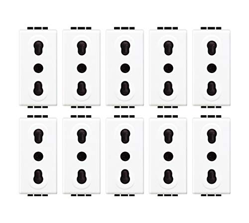 COMPONENTI DEL KIT: 10 pezzi Presa 2 P+T 16A, 250 Va.c., bipasso interasse 19 mm e 26 mm, alveoli protetti, 1 Modulo