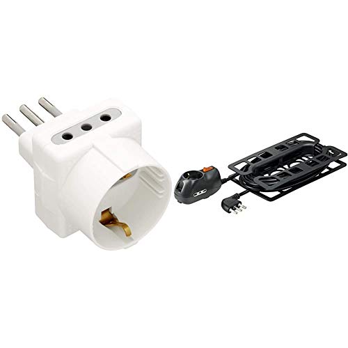 BTicino S3610D Adattatore Tris con 1 Presa Tedesca 2 Prese, 10A, Colore Bianco + 3635GB Prolunga Domestica BTRE con Spina 16A, 2 Prese Bipasso, Lunghezza 5 Metri