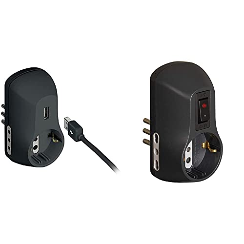 BTicino S3613Gu Multipresa Adattatore B3 Con Presa Usb, 1.5A, Nero & S3610Gb Kit Adattatore Safe 1 Presa Standard Tedesca E 2 Prese 10A Con Interruttore Di Sicurezza Luminoso-Colore Nero