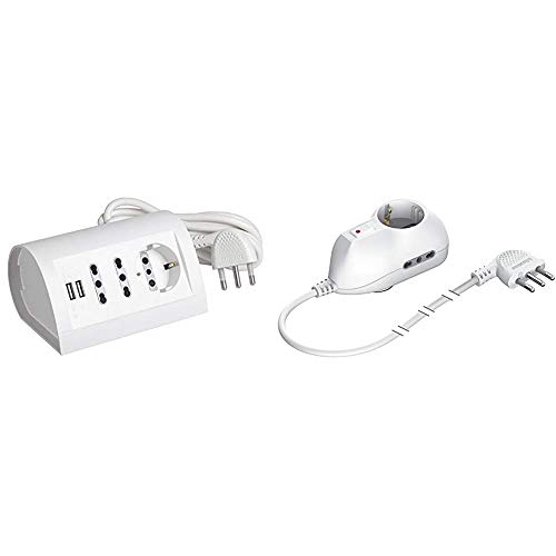 BTicino S3711DU Multipresa da Scrivania con Presa USB, 1.5A, Cavo da 2 m, Bianco & 3632DB Prolunga BTRE Safe, Spina 10 A, 2 Prese Bipasso, 10/16 A, 1 Presa P30