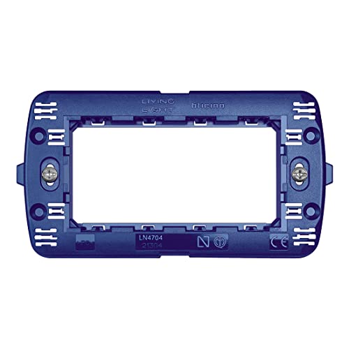 Bticino Set Supporto e placca a 4 Moduli Serie Livinglight, placchetta per interruttori luci e Prese, Serie Civile Ticino Living (1, Supporto e Placca Nera 4 Posti)