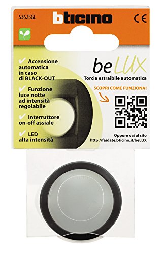 BTicino Torcia d'emergenza estraibile e Luce Notturna S3625GL, 220 volt, grigio antracite